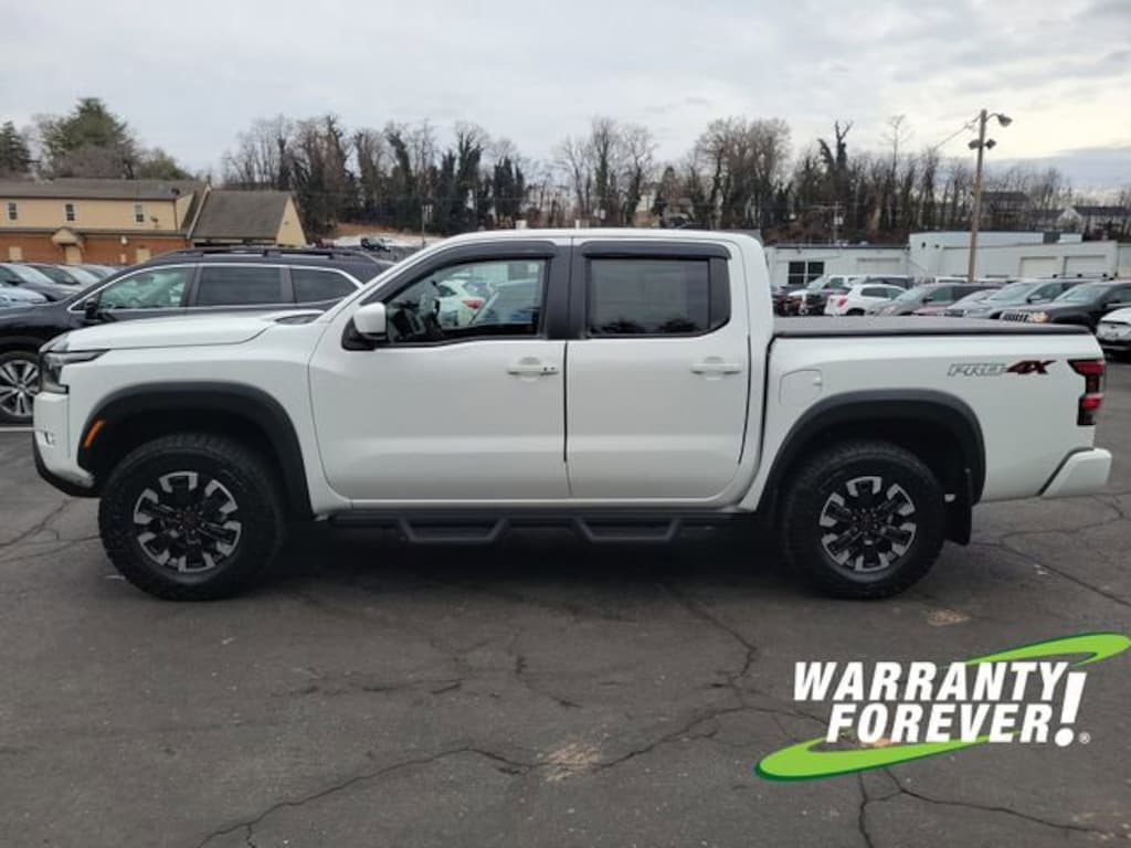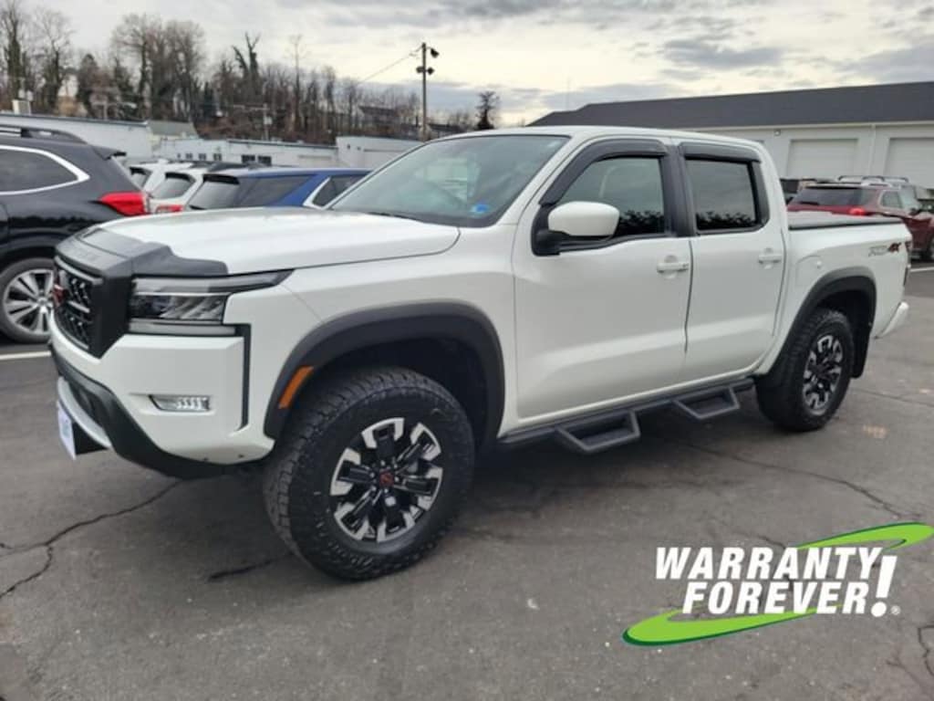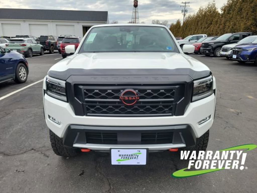 CARFAX One-Owner. Clean CARFAX. Glacier White 2023 Nissan Frontier PRO-4X 4WD 9-Speed Automatic 3.8L DI DOHC 24V V6 **WARRANTY FOREVER!**, **NAVIGATION/GPS**, **ONE OWNER**, ** ACCIDENT FREE CARFAX REPORT **, **STILL UNDER FACTORY WARRANTY**, Completely Detailed, Recent Oil Change, Multi Point Inspection, Frontier PRO-4X, 4D Crew Cab, 3.8L DI DOHC 24V V6, 9-Speed Automatic, 4WD, Glacier White, Charcoal w/Lava Red Stitch w/PRO Embroidered Premium Cloth Seat Trim, Blind Spot Warning, High Beam Assist (HBA), Intelligent Cruise Control, Lane Departure Warning System, Navigation system: Nissan Navigation with Voice Recognition, Off-Road Protection Package, Off-Road Style Step Rails, Rear Automatic Braking (RAB), Rear Cross Traffic Alert (RCTA), Rear Sonar System, Technology Package, Tow Package.